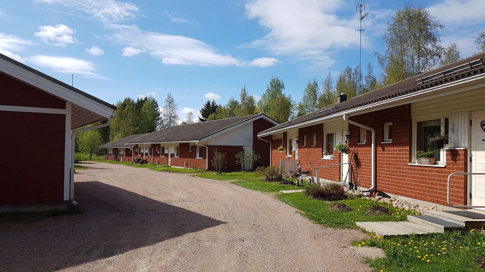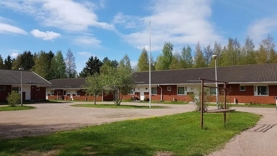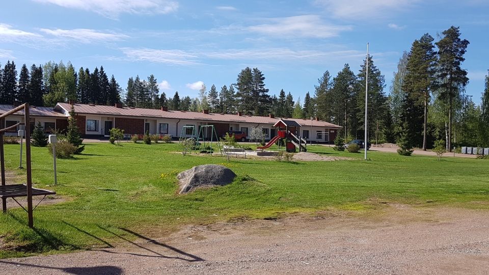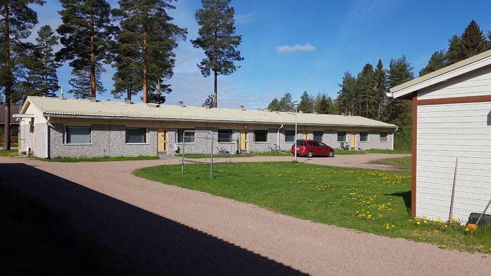 Yhteinäiskoulun vieressä sijaitsevien vuokratalojen vanhin rivitalo.